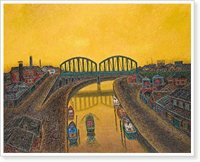 そして出会ったのが木村浩子です。彼女は1937年生まれ。1歳になった直後の高熱のために脳性小児マヒとなり、言語障がい、両手右足硬直の重度障がい者となりました。長い施設での生活を経て、自立を目指し、わずかに動く左足で文字を独学し、習得。可能性を求めて足での短歌、編み物、水彩画などに次々と挑戦し、絵画に生きる道を見出しました。