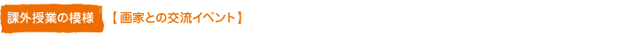9月13日(木)に行われた課外授業では、様々な地域から集まった約20人の小学生と口で描く画家牧野文幸さん・古小路浩典さん・南栄一さんが一緒になって口で描く交流のモニュメント「HEARTありがとうフラッグ」を作りました。子供たちは慣れない経験に戸惑いながらも真剣に取り組んでいました。出演画家と一緒になって描かれたフラッグ(=作品)は、会場に飾られ、最後に行われた記念撮影では、子供たちの笑顔と誇らしげな表情が非常に印象的でした。